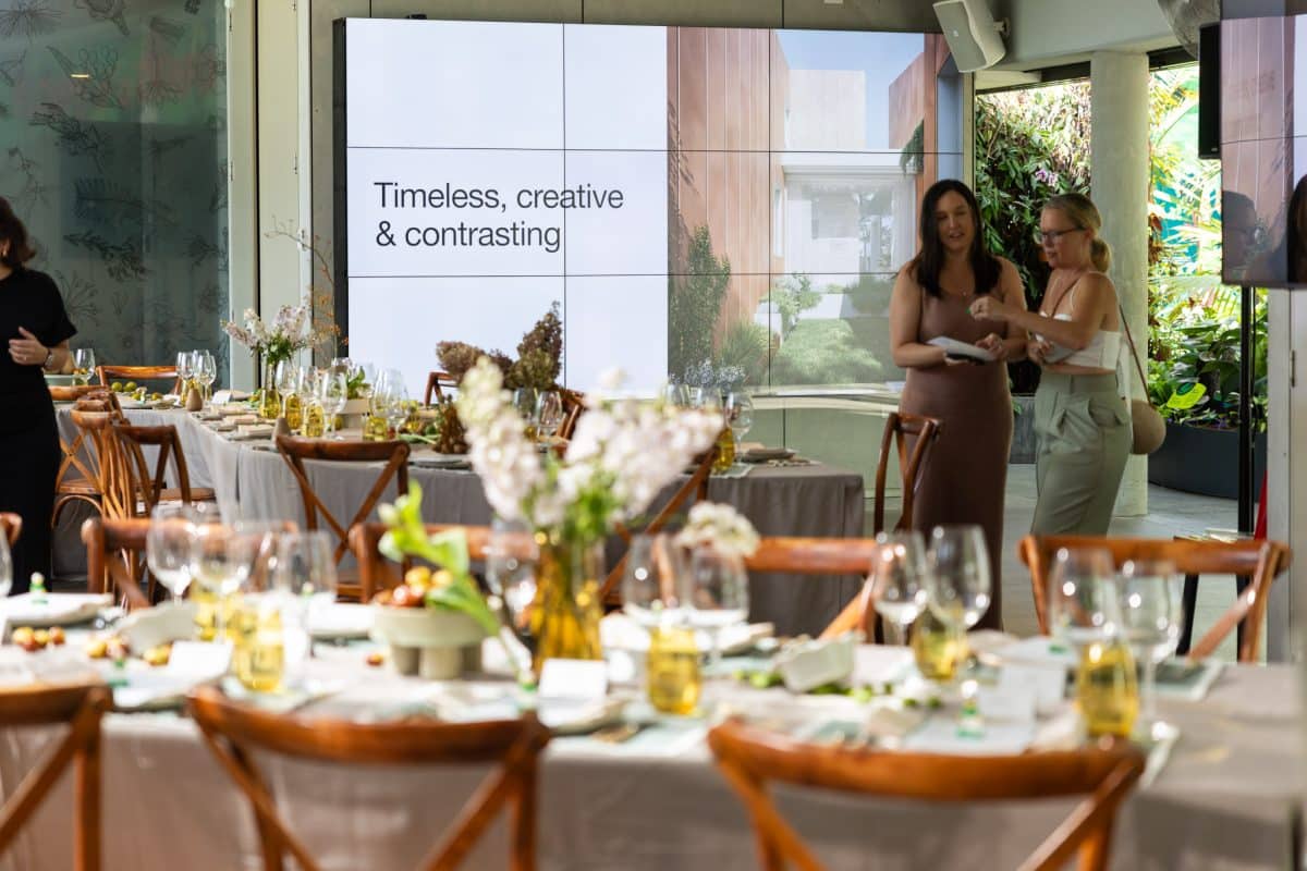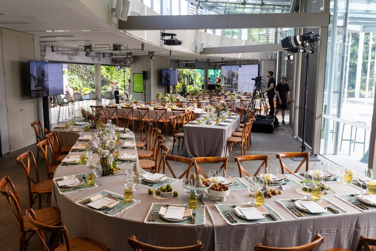 For this year’s Modern Forecast Event we let the event space form the foundation of our styling approach. It was at The Caylx in Sydney’s Botanical Gardens. The spaces is home to a spectacular indoor greenhouse garden, which is flanked by a curved event space.